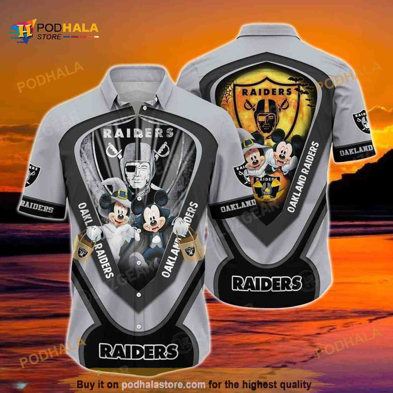Disney Hawaiian Shirt Mickey Halloween Night Las Vegas Raiders