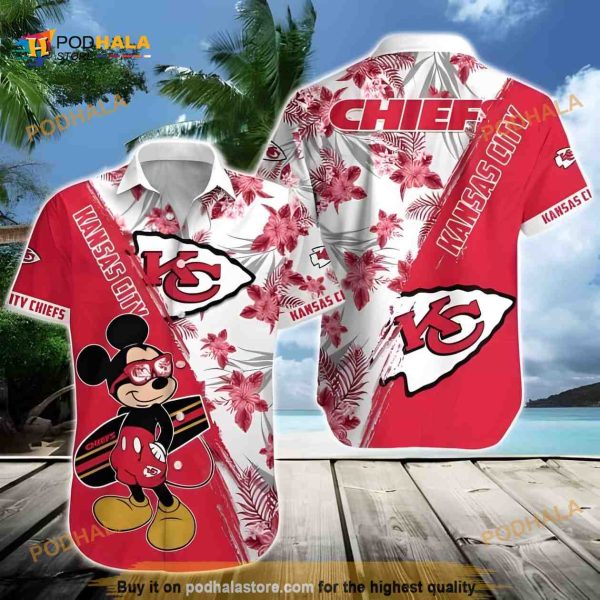 NFL Kansas City Chiefs Hawaiian Shirt Disney Mickey Mouse Tropical Flower Pattern